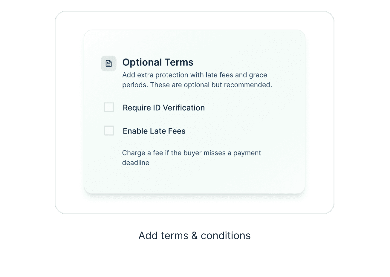 Identity verification helps ensure you know who you’re transacting with. Sellers can require buyers to verify their identity before entering an agreement, creating an added layer of transparency and accountability without slowing down legitimate deals.